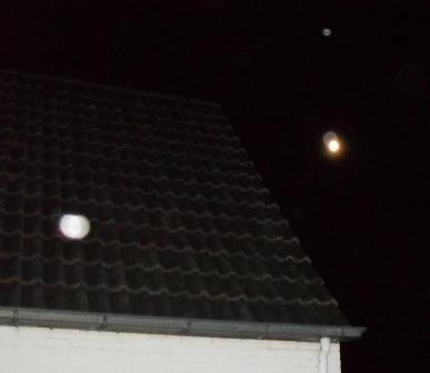 Ik vind het wel jammer dat je de orb bij het dak afdoet als zijnde een waterdruppel. Op het totaalbeeld van de foto ernaast zie je rechts naast het dak een gele bol... de maan, dus wolkenloze hemel. Welke kenmerken zeggen jou dat het een waterdruppel zou moeten zijn?
